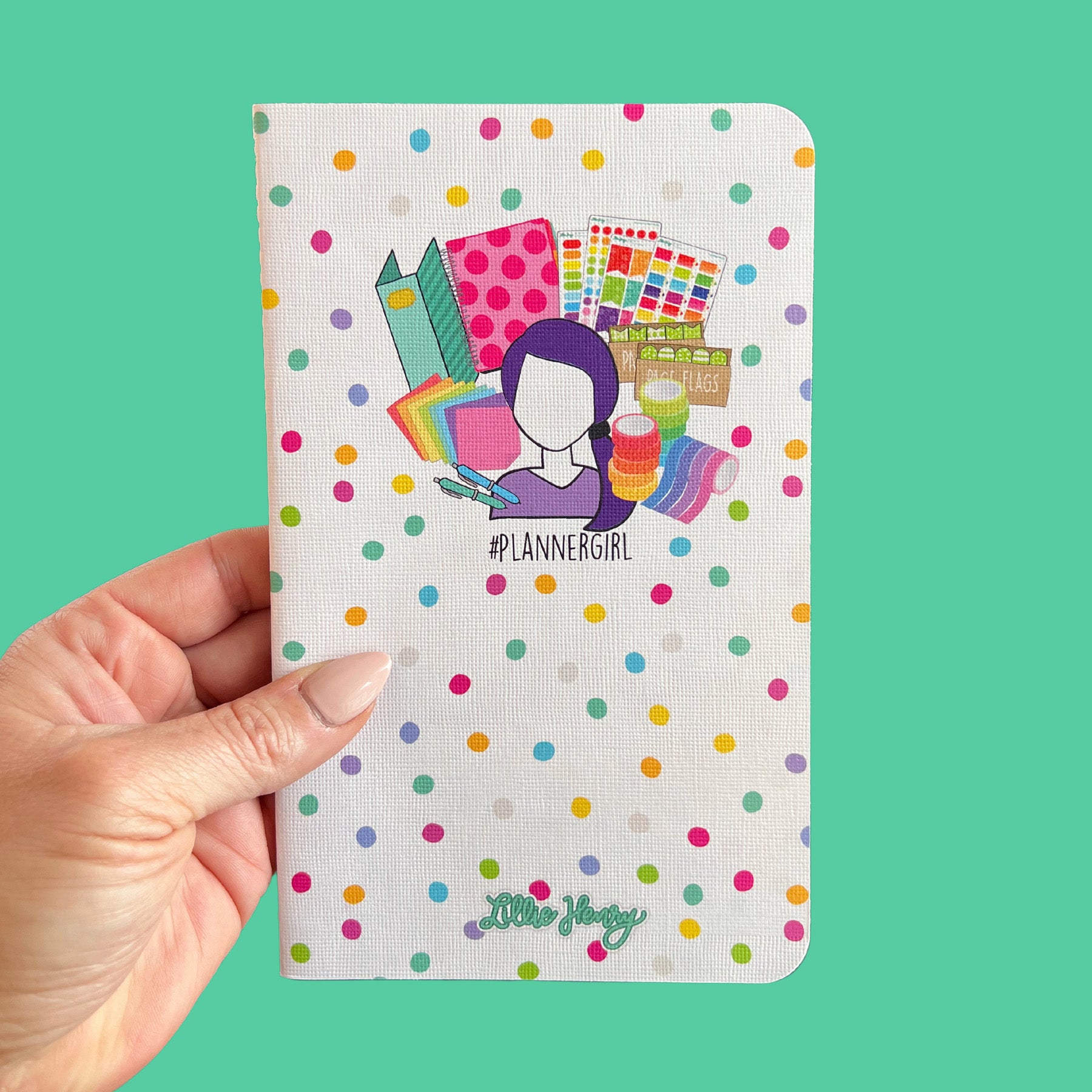 This exclusive Lillie Henry May Designs May Book (www.maydesigns.com) features a hand-drawn #PlannerGirl illustration on a confetti background with DOT GRID pages. These cute little notebooks are perfect for making lists, sketching, and SO much more!