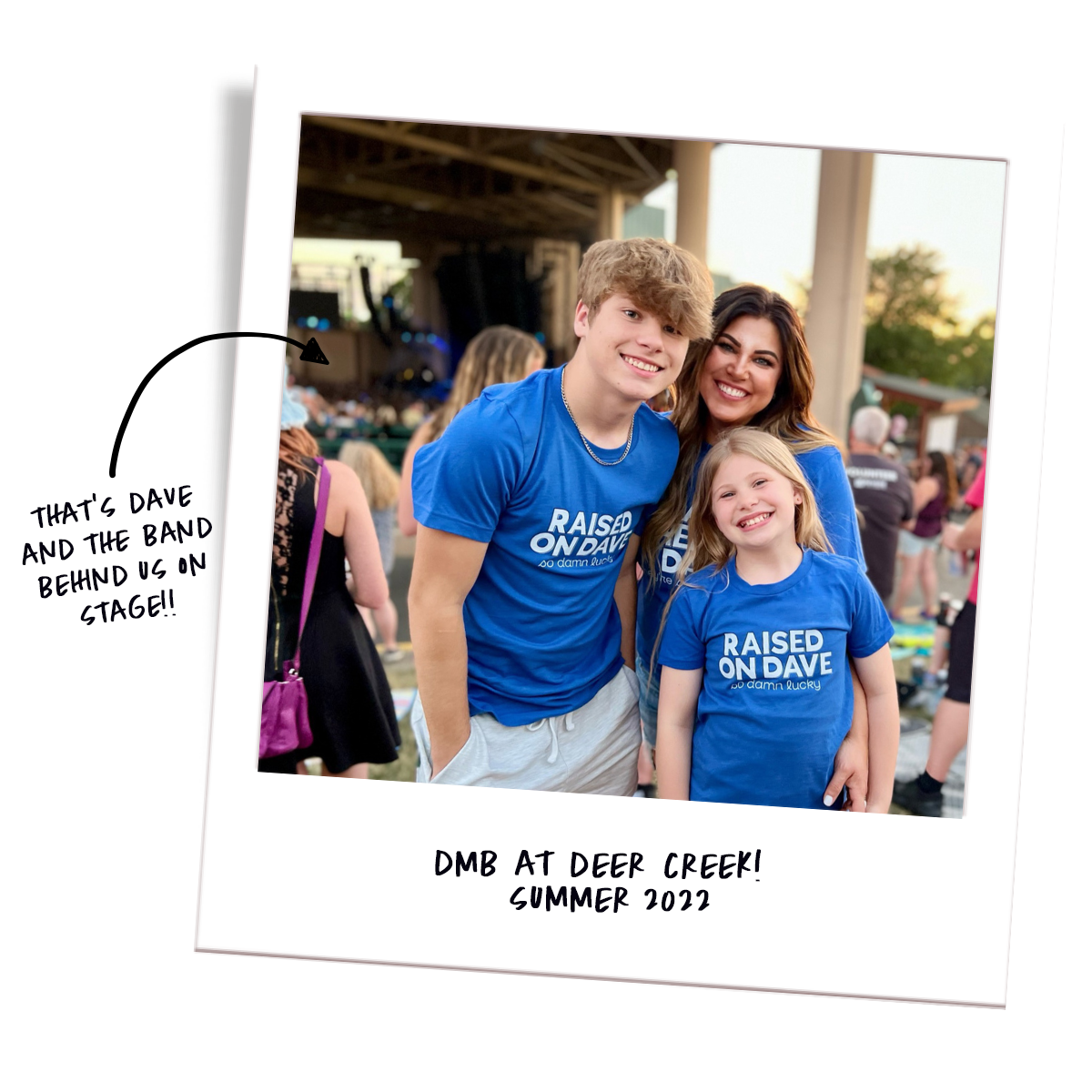 I'm Erin, and these are my kids - Brecken and Quinn. Not pictured are the other two members of our family: Lucy, our 190 pound Saint Bernard, and Lola, our 12 pound French Bulldog. They're missing because this photo was taken in the summer of 2022, when I finally took my kids to see their very first TWO Dave Matthews Band shows in Indiana! Yes, I force my kids to listen to my favorite band, and yes, I also force them to wear matching shirts with me to mark the occasion as well. They really are so damn lucky! (That's a Dave song, of course)